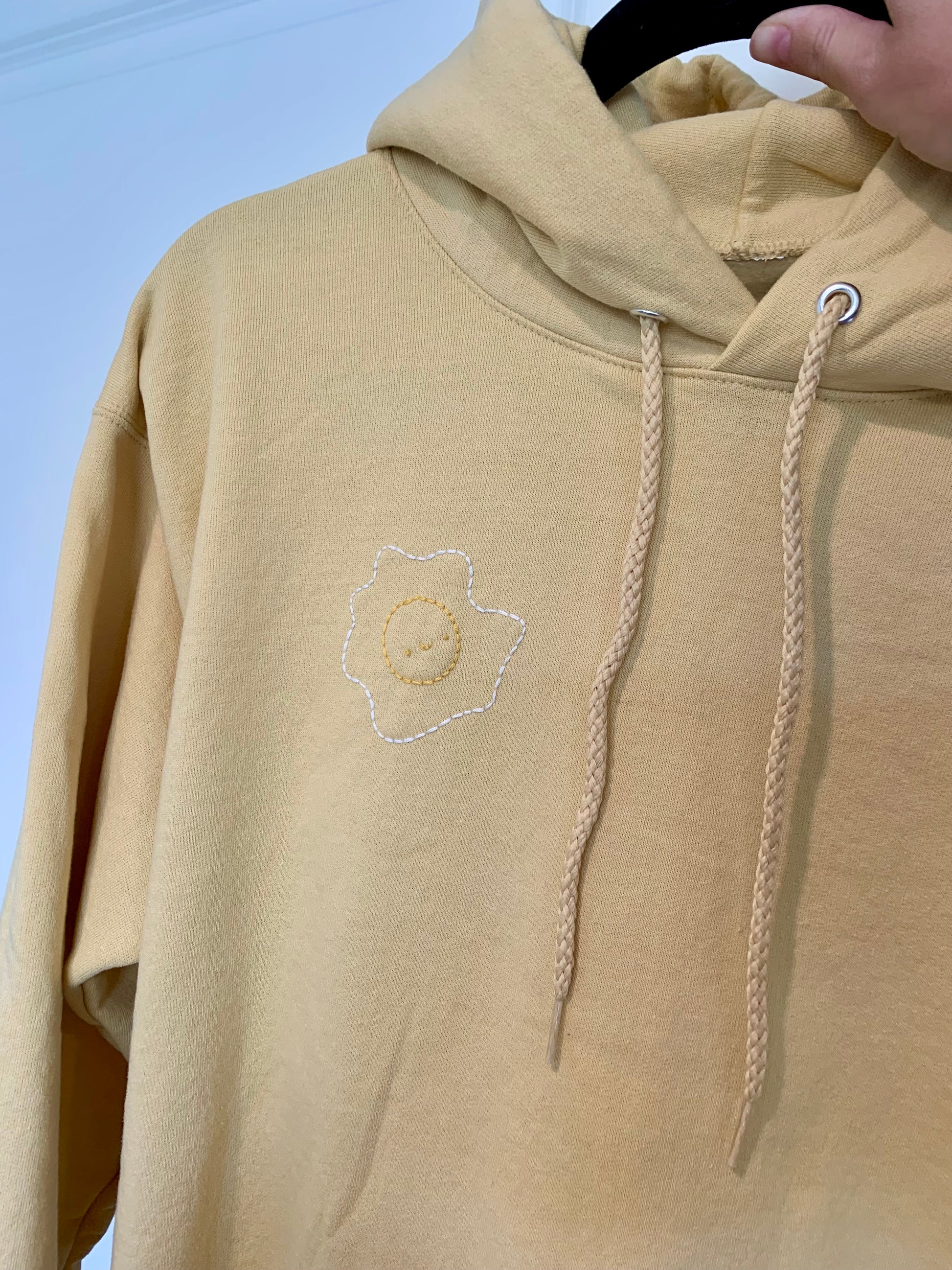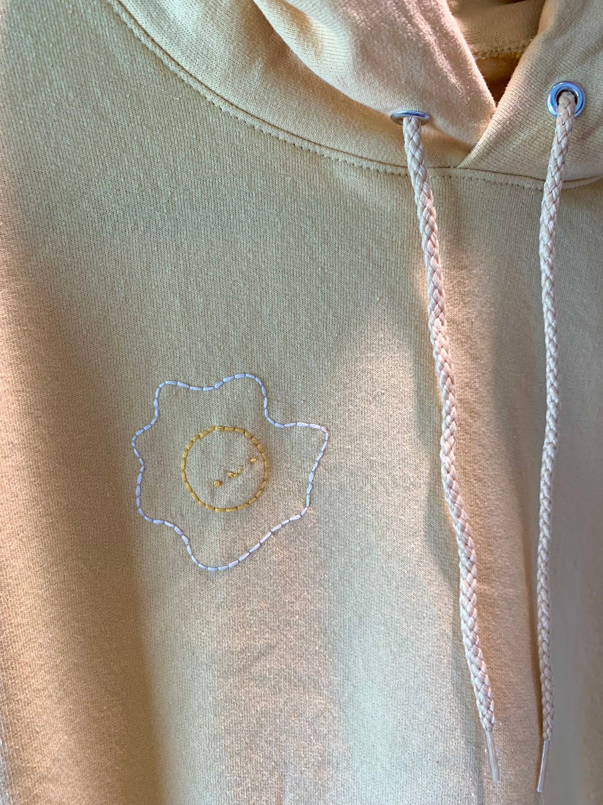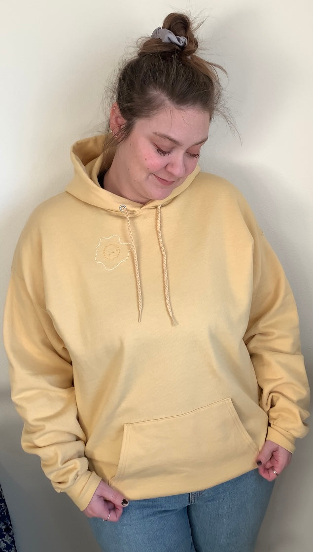 Hand Embroidered Fried Egg on Solid Butter Yellow Hoodie