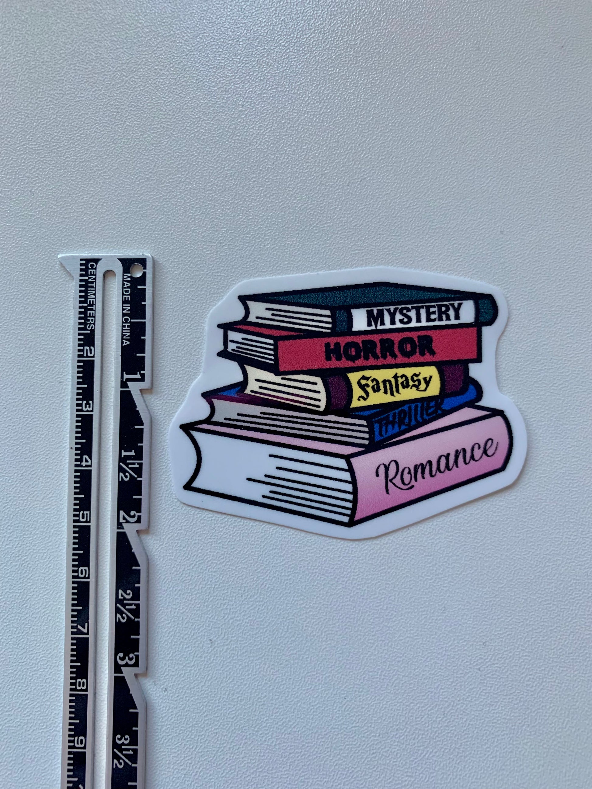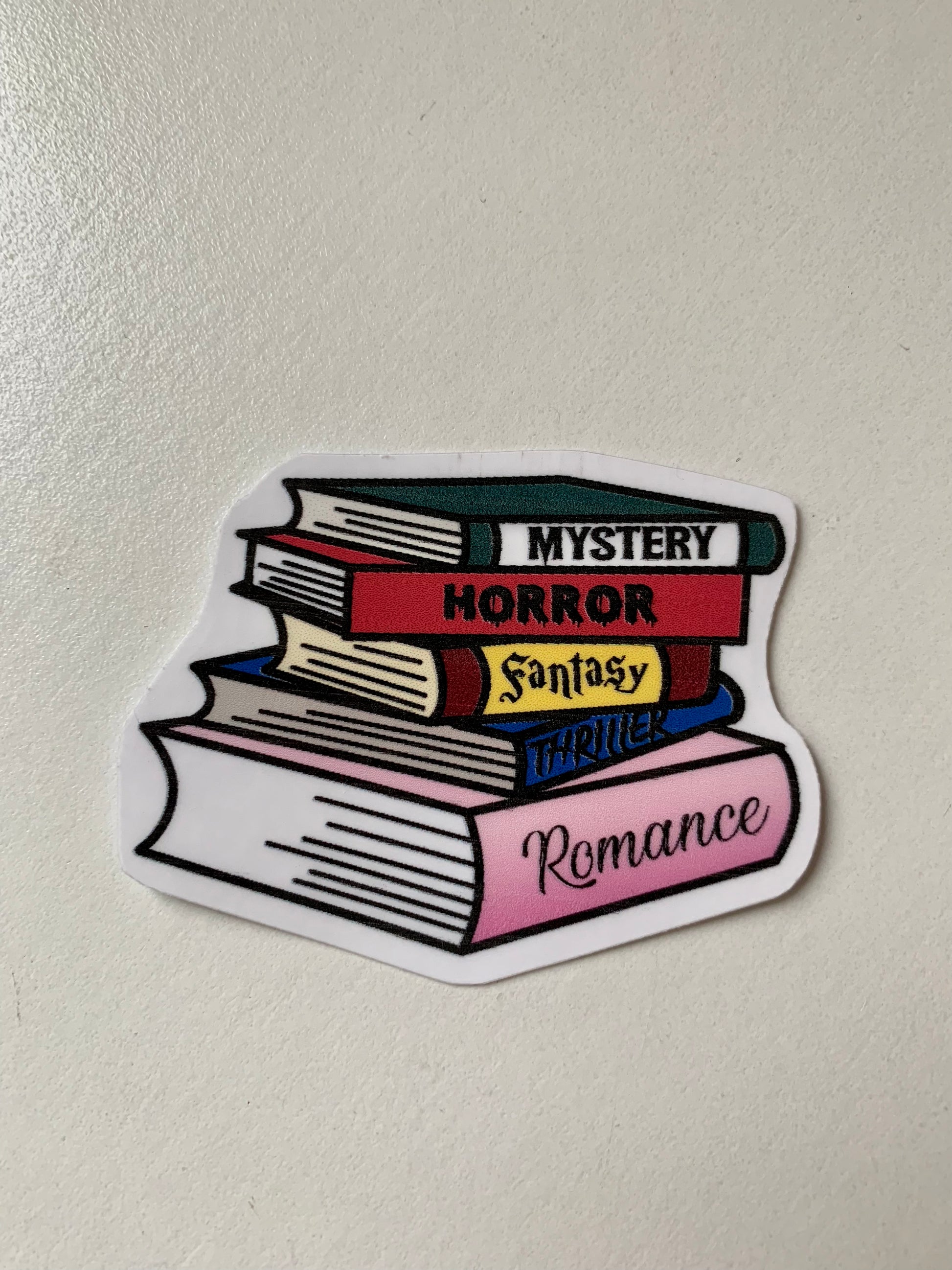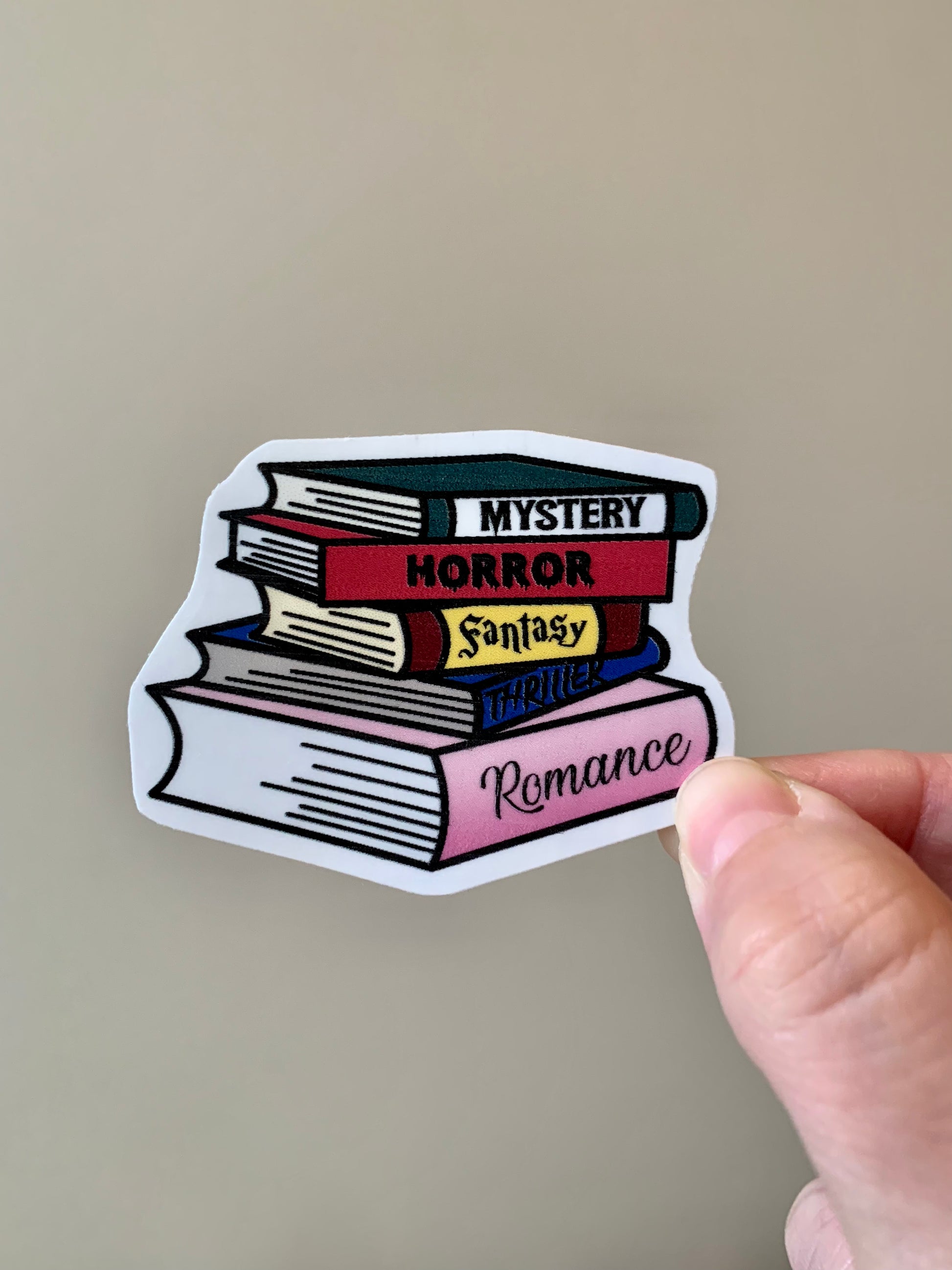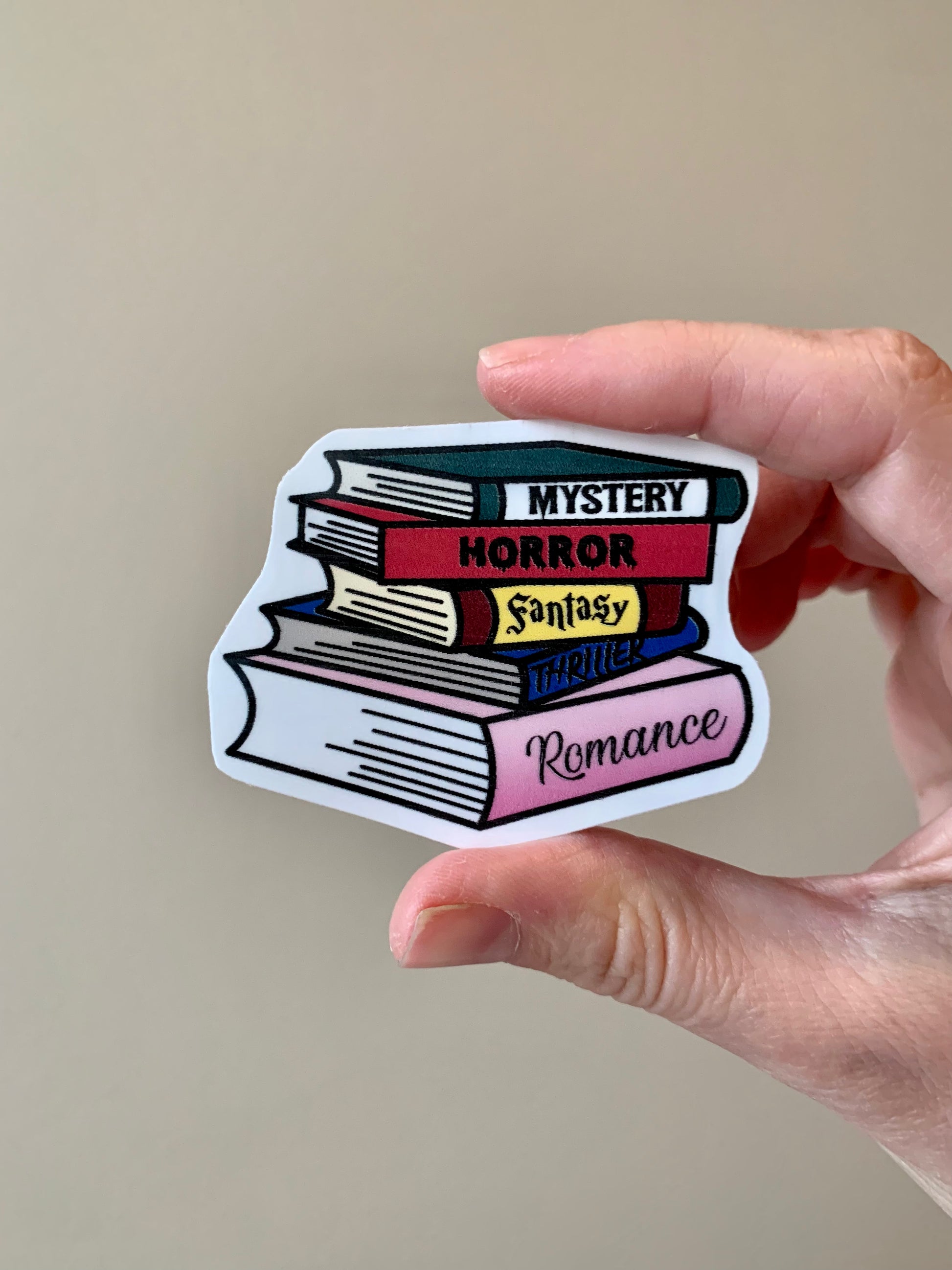 Colorful, Cute Handmade Genre Book Stack Sticker – Literary Gift for Book Lovers, Bibliophiles, and Librarians