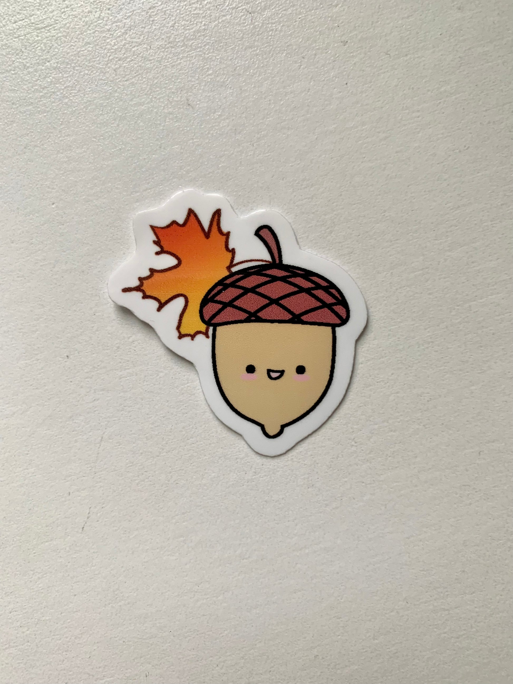 Kawaii Happy Acorn with Maple Leaf Sticker