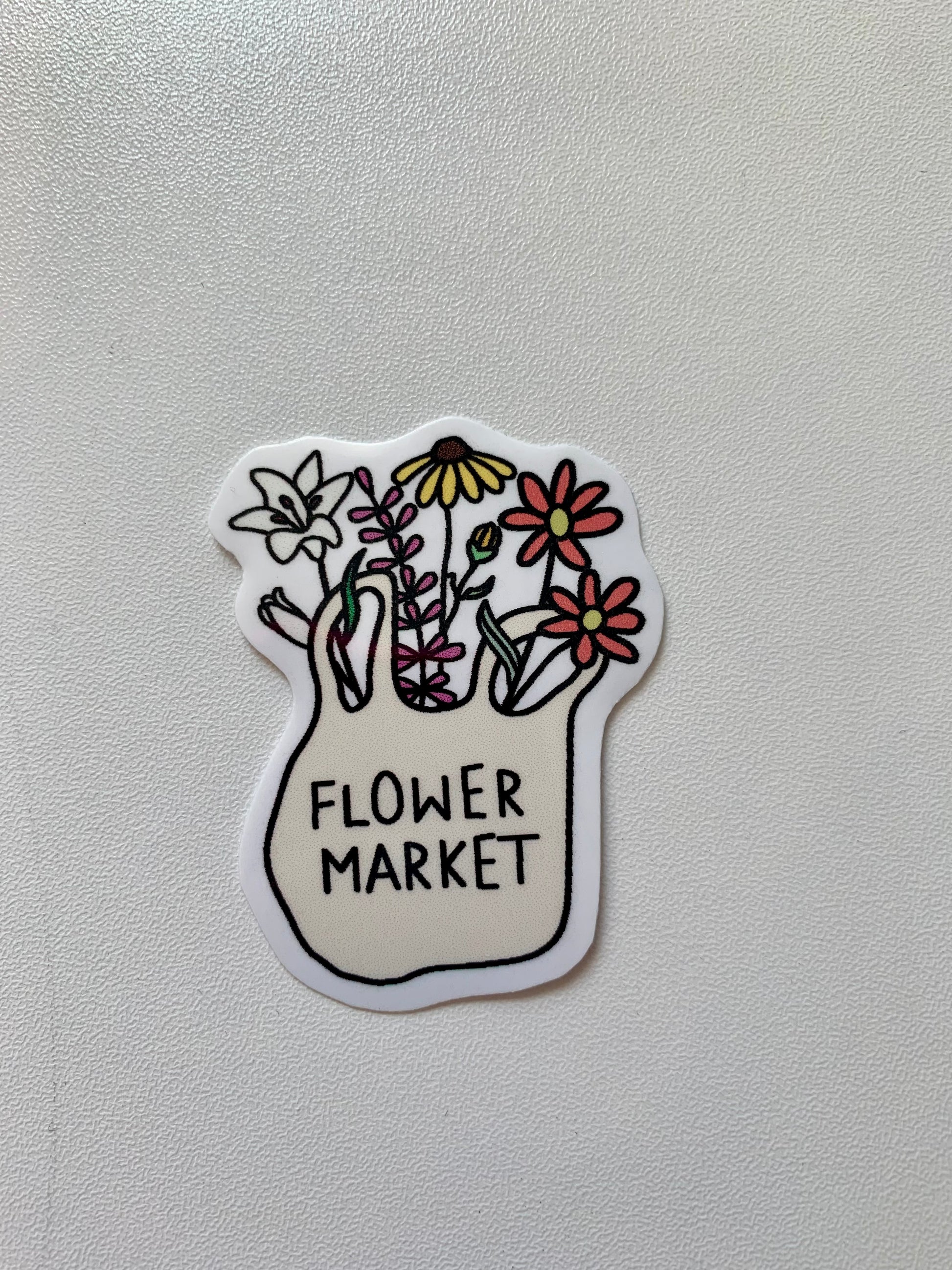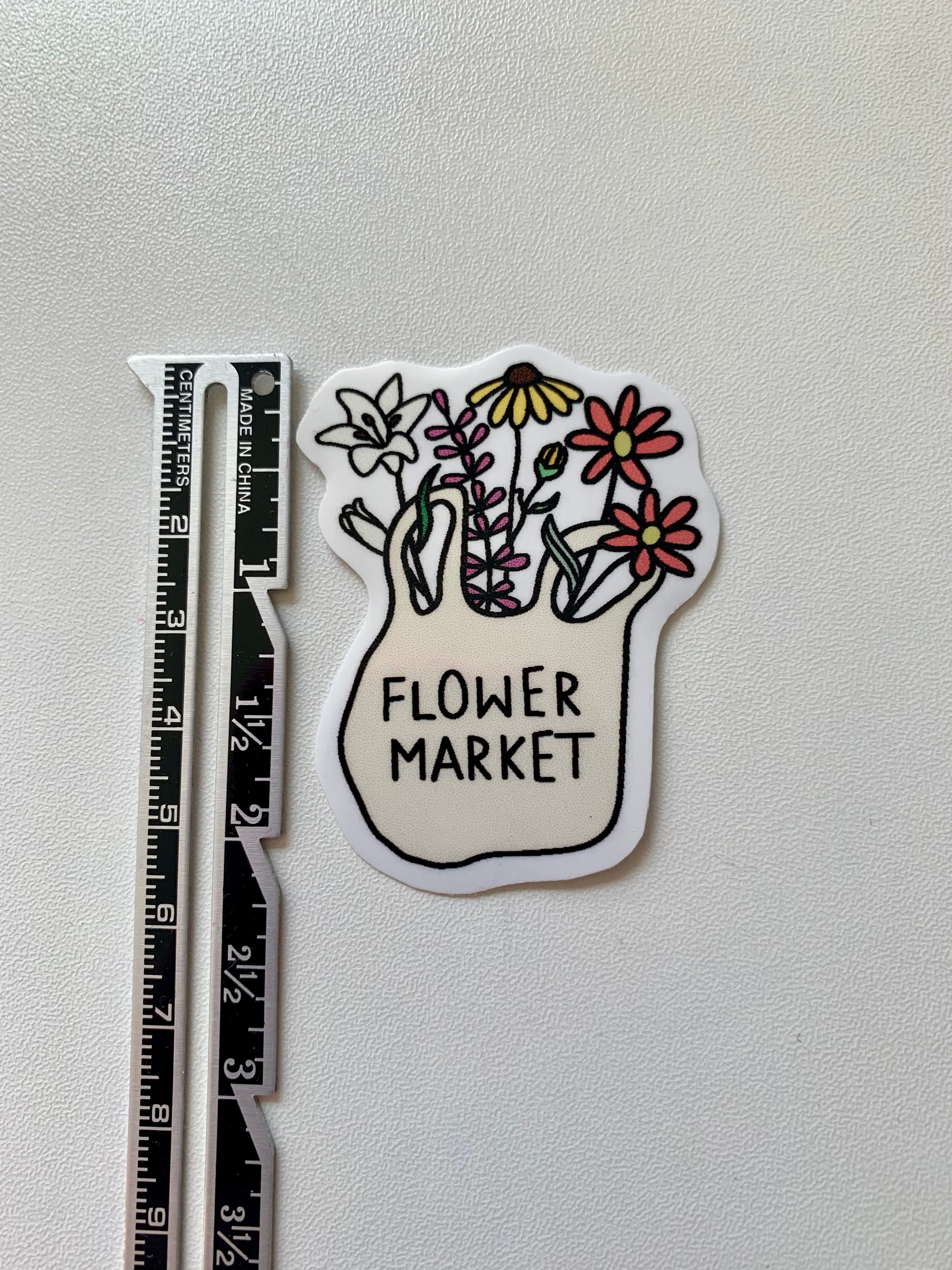 Flower Market Tote Bag Sticker - Cute Floral Design for Local Market Lovers - Eco-Friendly Spring Sticker for Laptop, Water Bottles