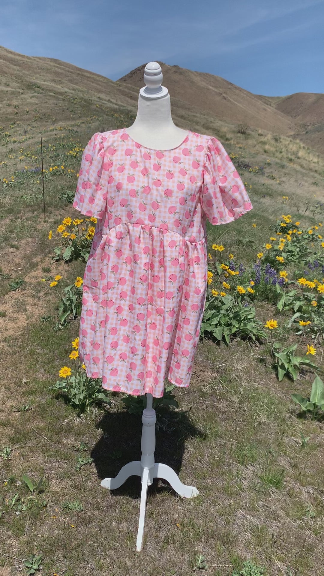 Handmade dress made from an apple checkered bedsheet. Lightweight fabric. 100% Polyester