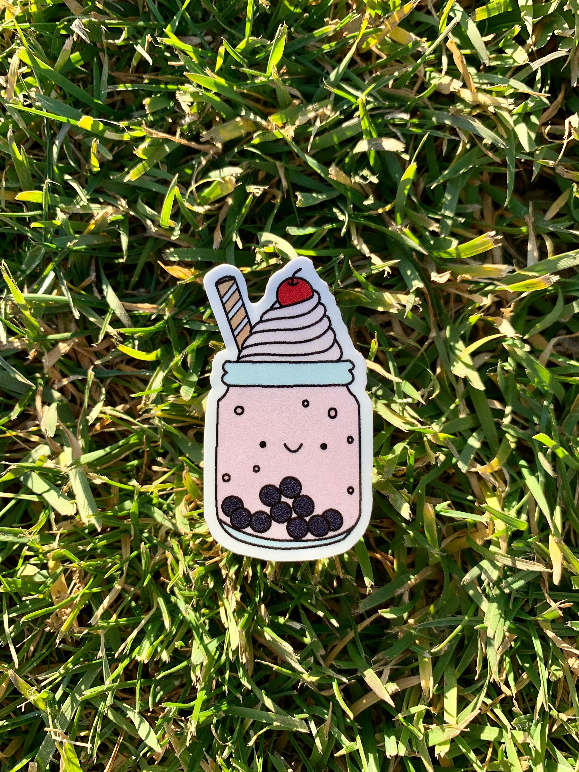 Printed on glossy vinyl, then laminated on top and hand cut.