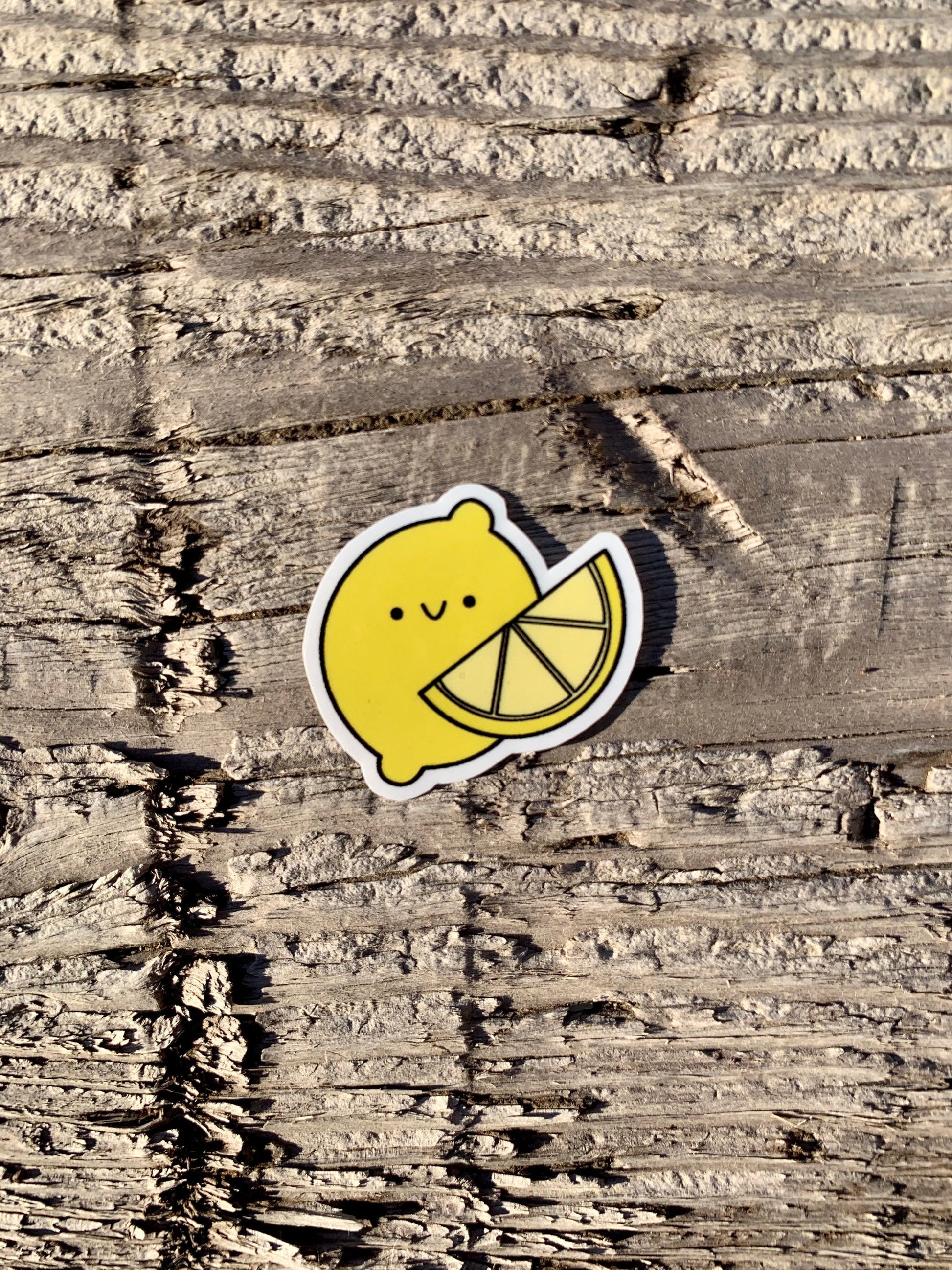 Kawaii Happy Smiling Lemon with Wedge Sticker