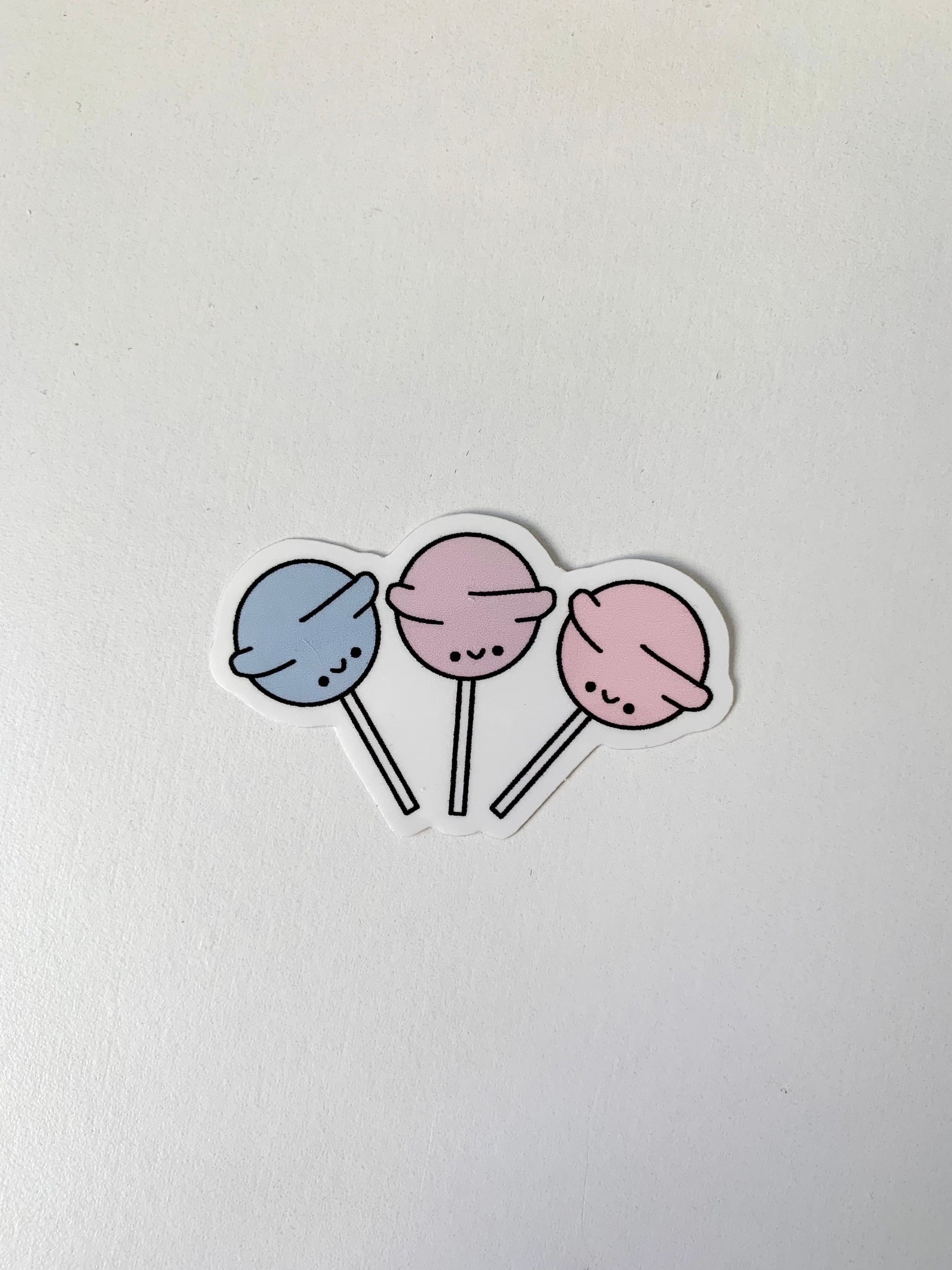 Kawaii Happy Smiling Pastel Colored Lollipops Trio Sticker Grouped together pastel blue, purple, and pink smiling happy lollipops.