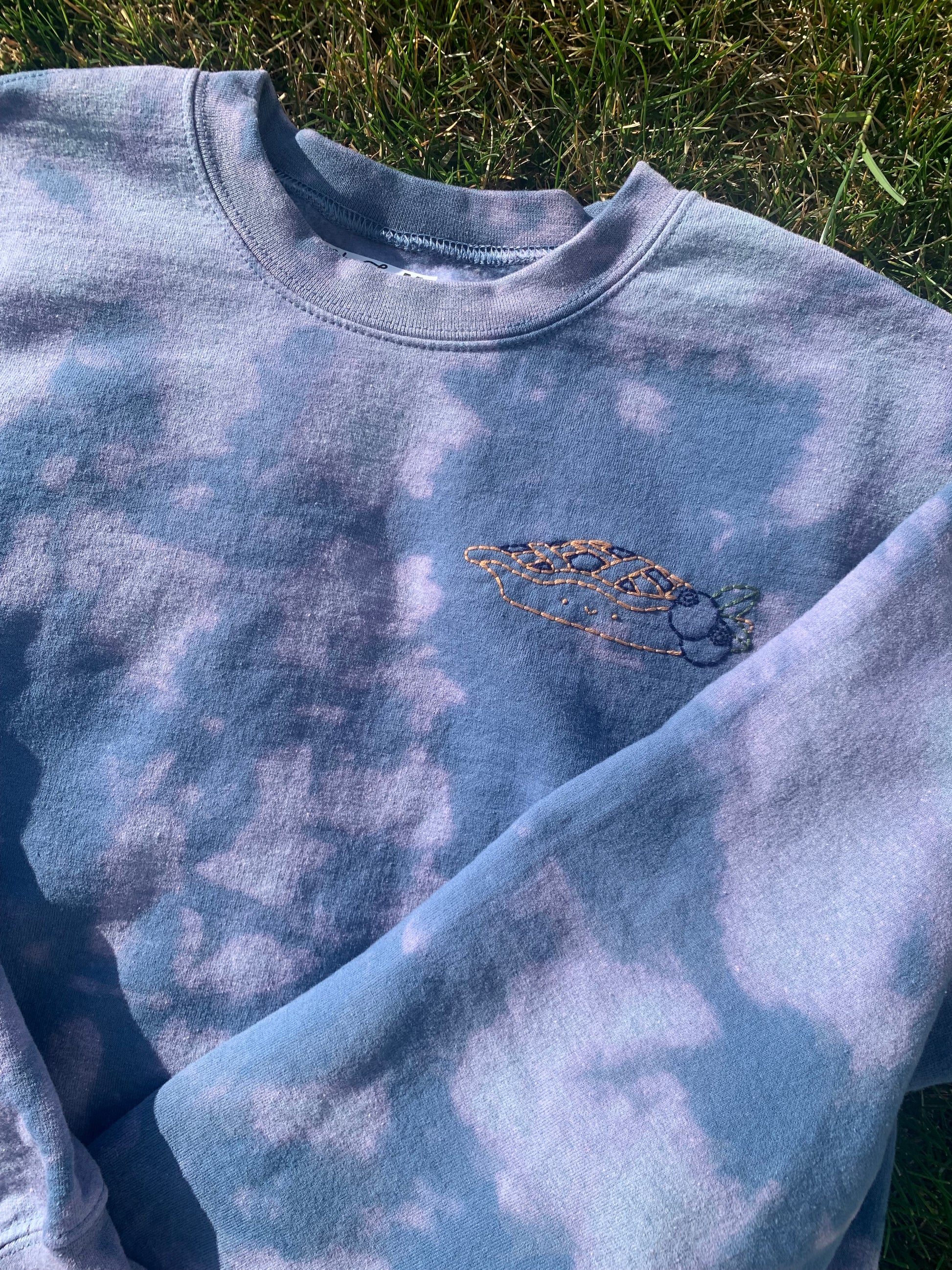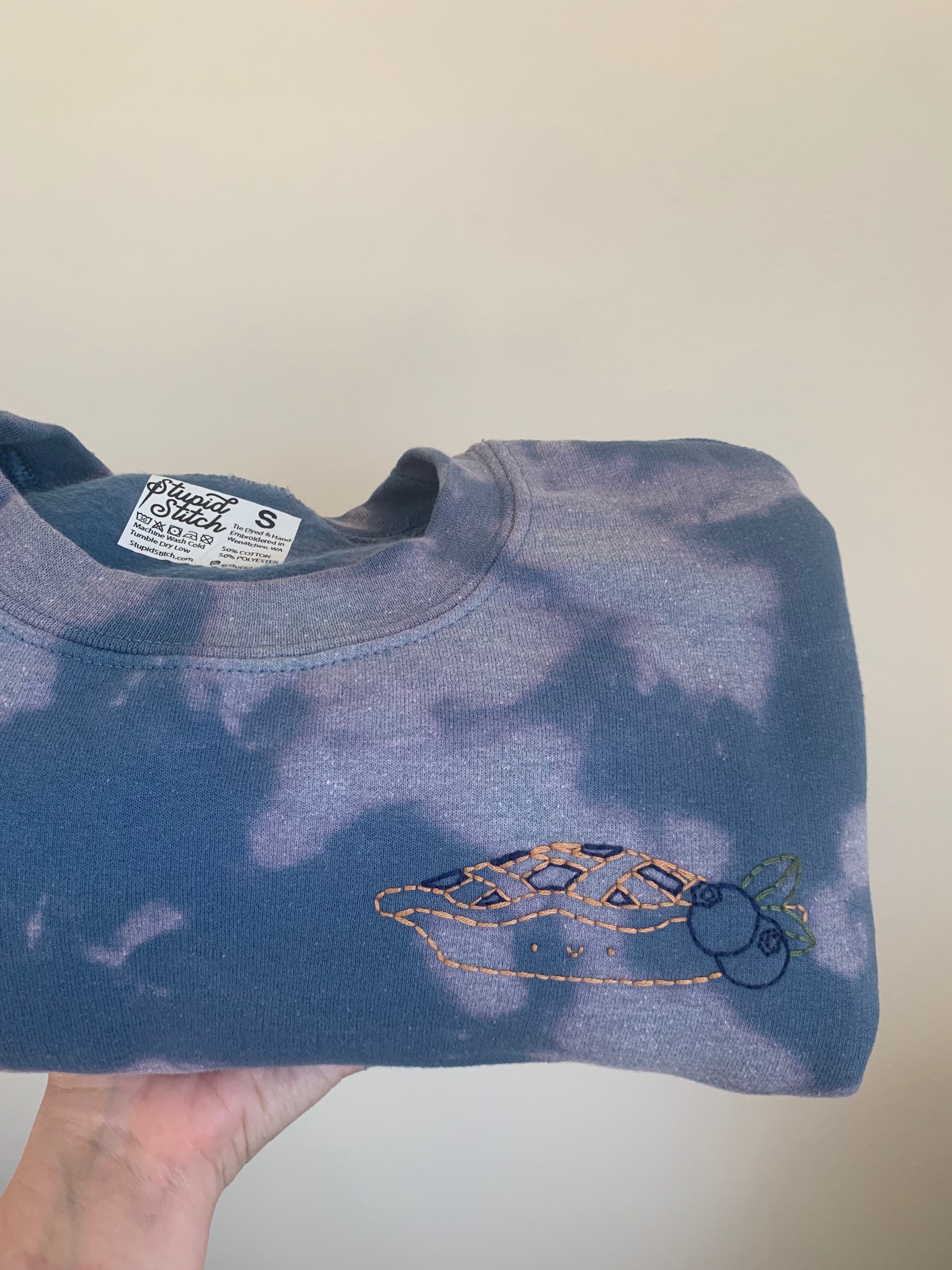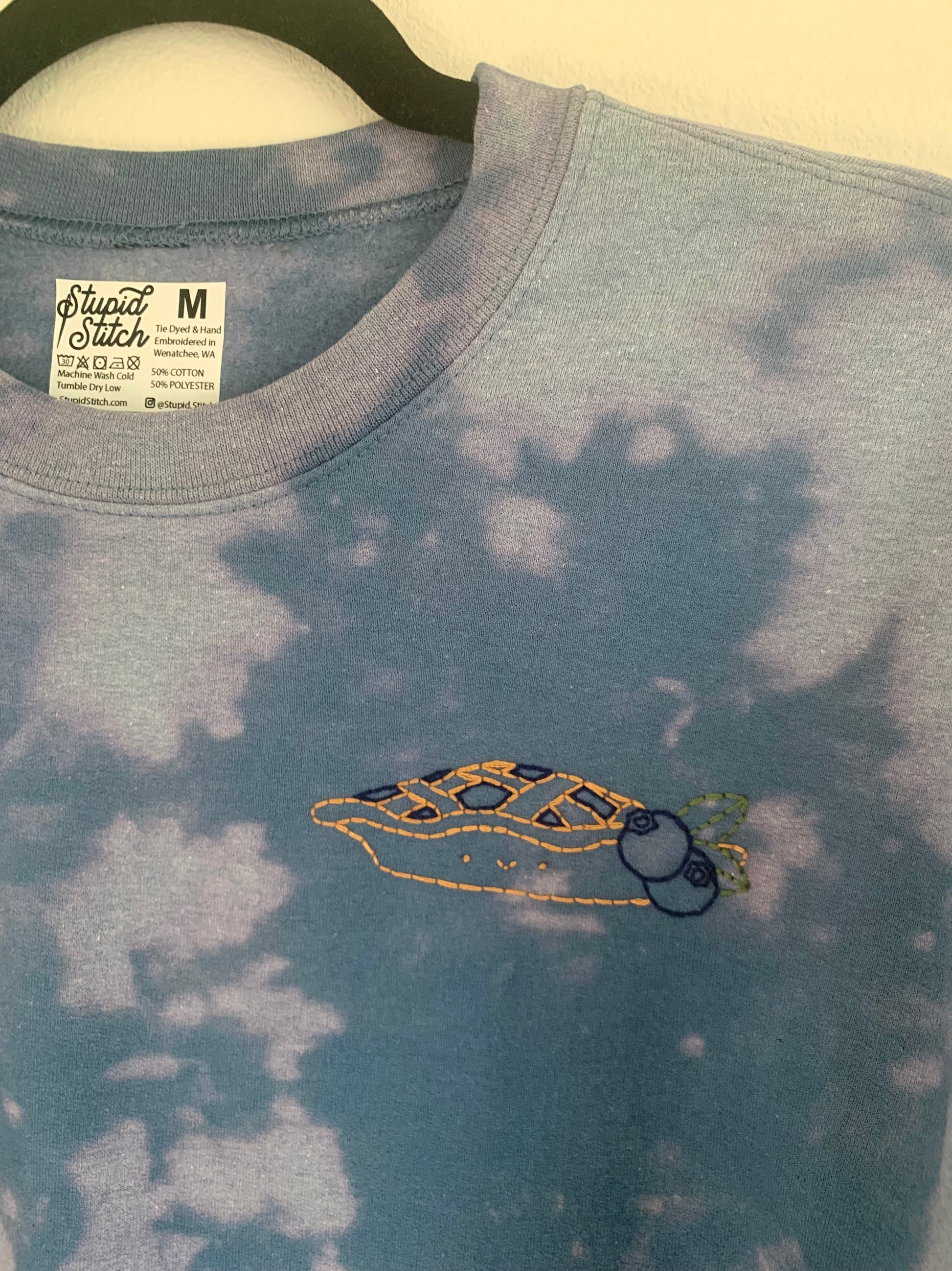 Blueberry Pie Sweater – Hand-Embroidered Tie-Dye Pullover