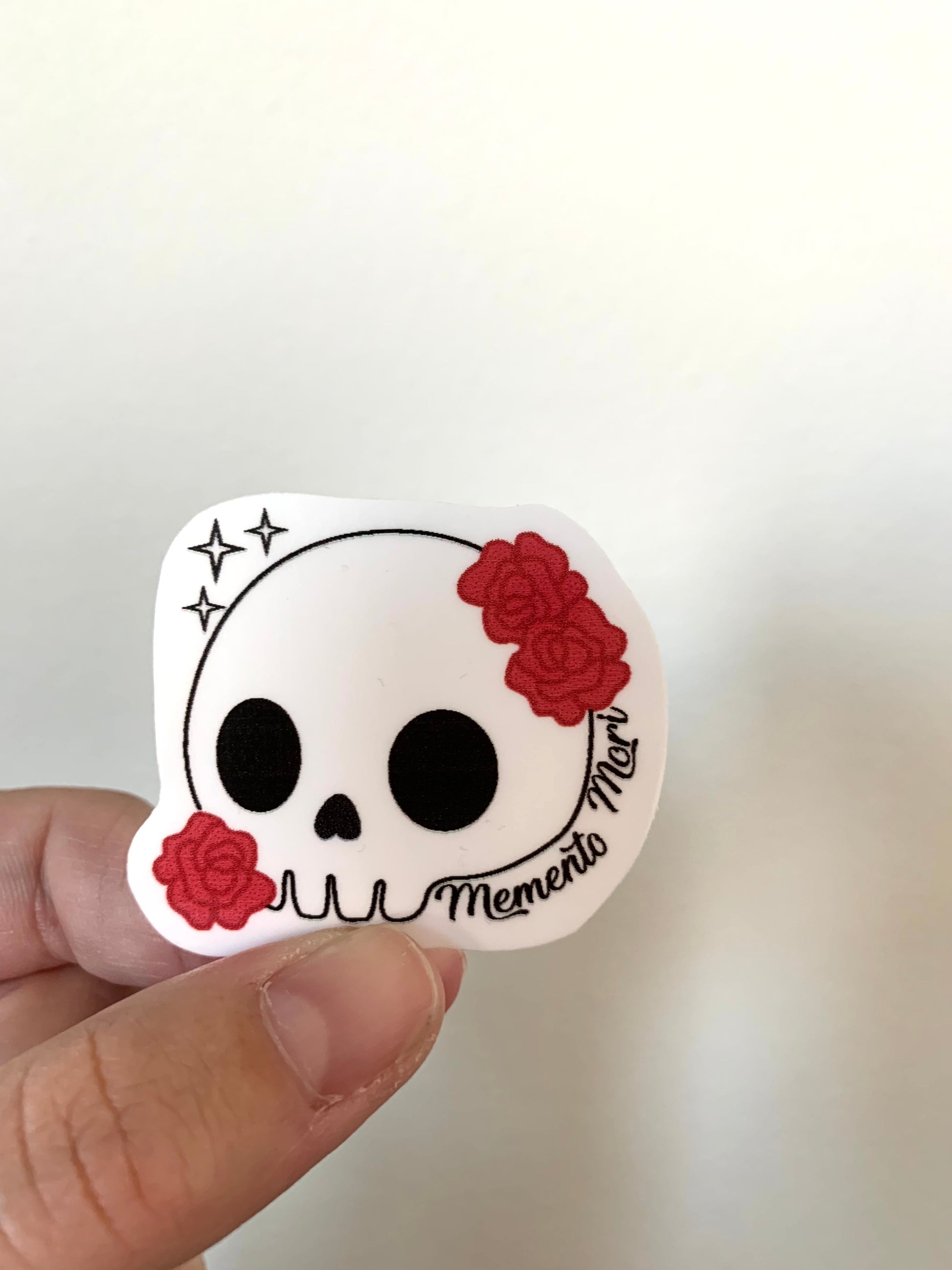 Memento Mori Sparkly Skull with Roses Sticker, Black, White, Red Goth Art, Spooky Season, Dark Horror, Vinyl Waterproof Small Sticker